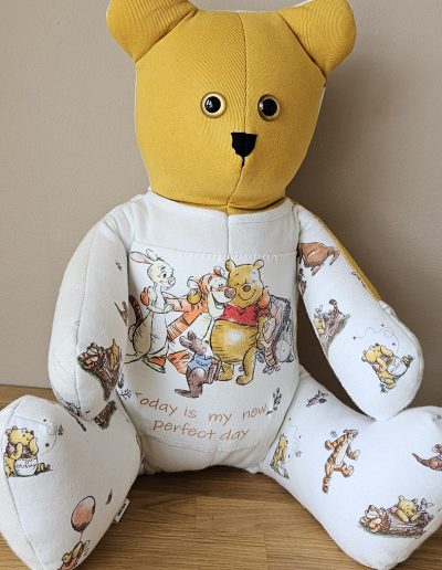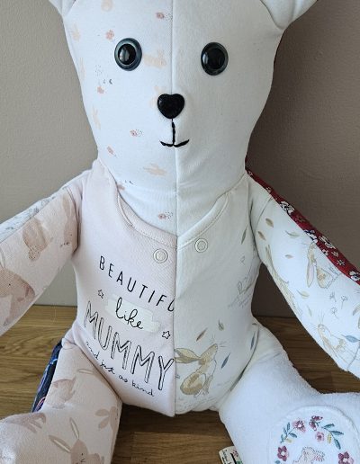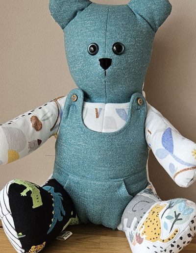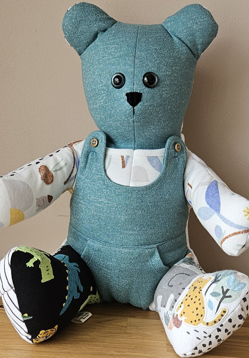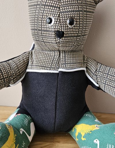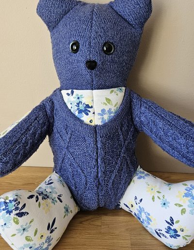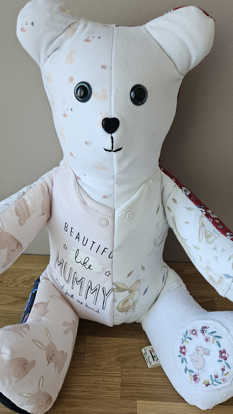 A small, independent business where every bear is crafted with love and care from my home studio in Devon. I take pride in offering a uniquely personalised service, working closely with each customer to capture the memories held within their chosen fabrics. Whether you’re local and want to sit down with me over a coffee to discuss your bear, or connecting from afar, I’m here to listen to your stories and honour what these fabrics mean to you.